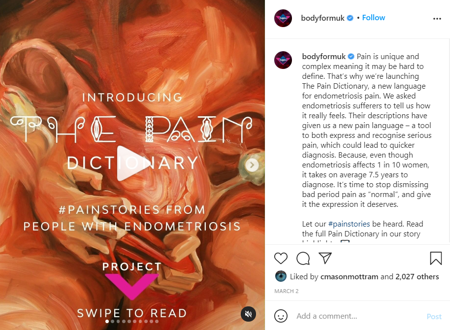 Below is some social post copy I crafted and adapted from the global toolkit so support the UK launch. I also carried out ongoing community management to execute content across social and engage with the community who were speaking to and contributing their own #painstories.