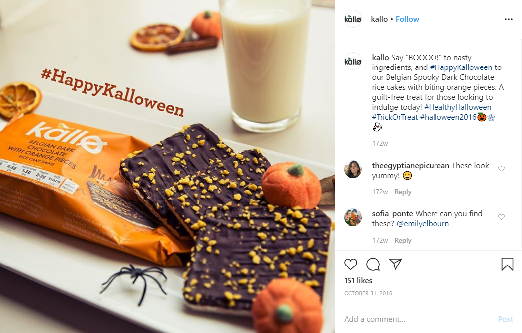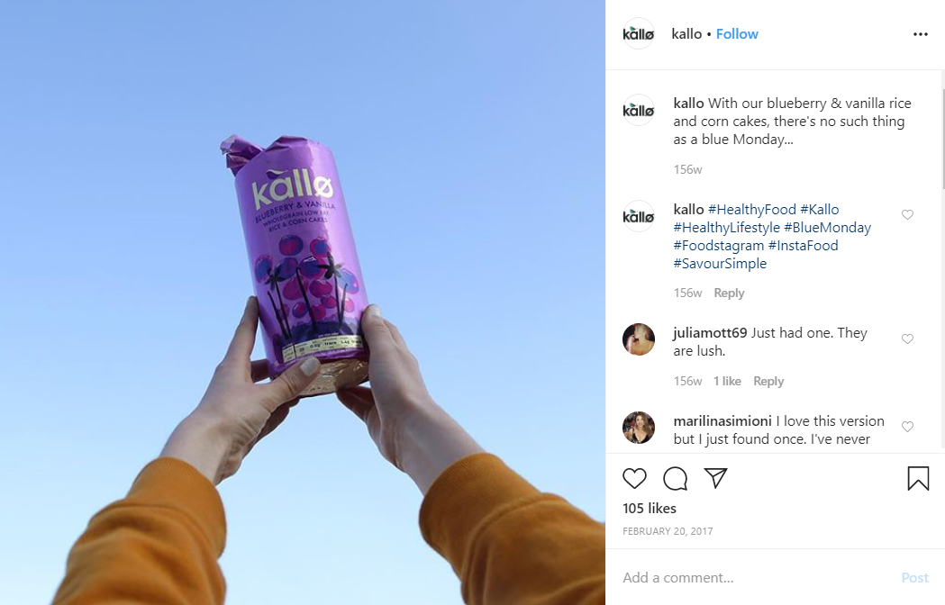 I was responsible for writing the social media copy for Kallo rice cakes, as well as researching and coming up with new ideas for the monthly content calendars.