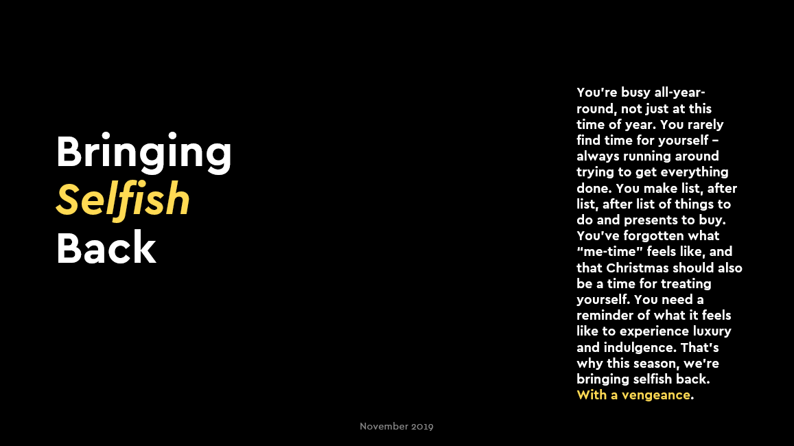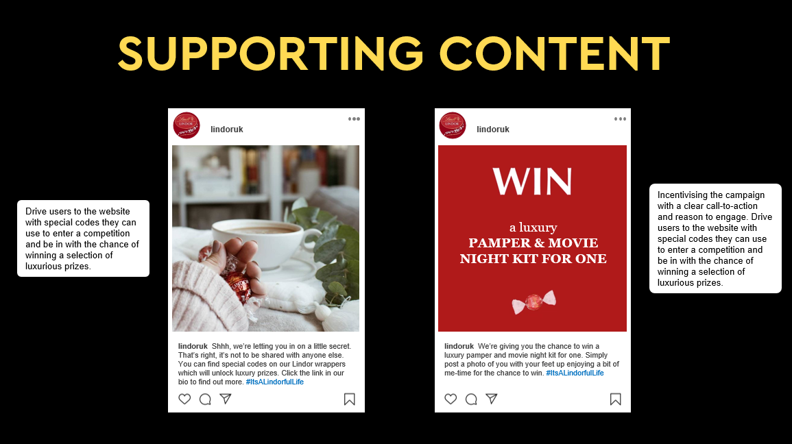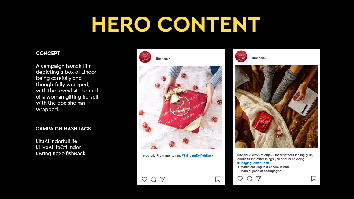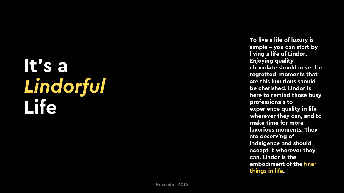 I recently worked on a brief to come up with a Christmas campaign to increase the relevancy of Lindor against its competitors. My brief was to execute different copy variations and work on conceptual copy.