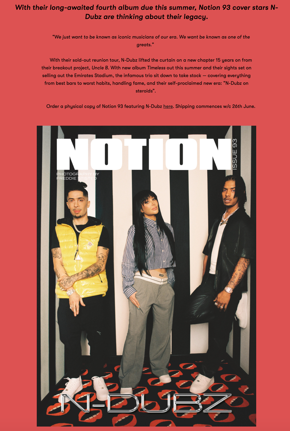 Interview with N-Dubz for Notion Magazine, Issue 93.