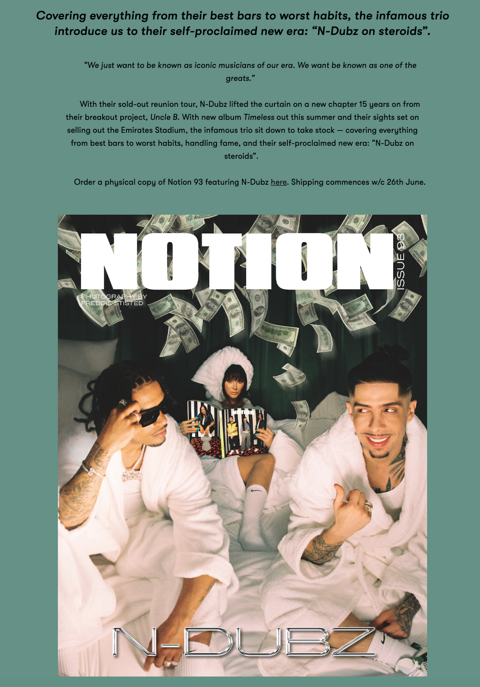 Interview with N-Dubz for Notion Magazine, Issue 93.​​​​​​​